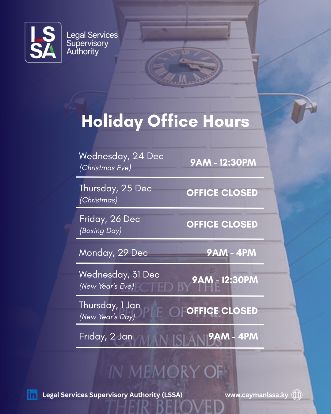 LSSA – Holiday Working Hours